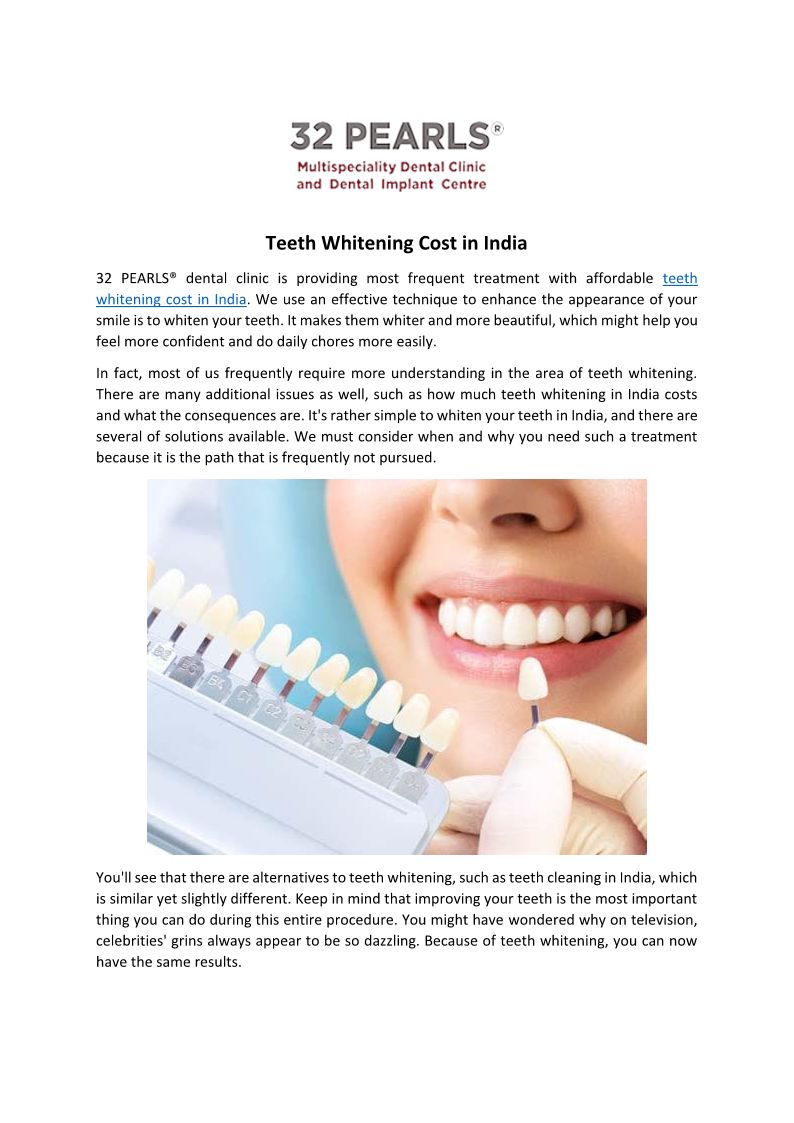 Teeth Whitening Cost in Indi...