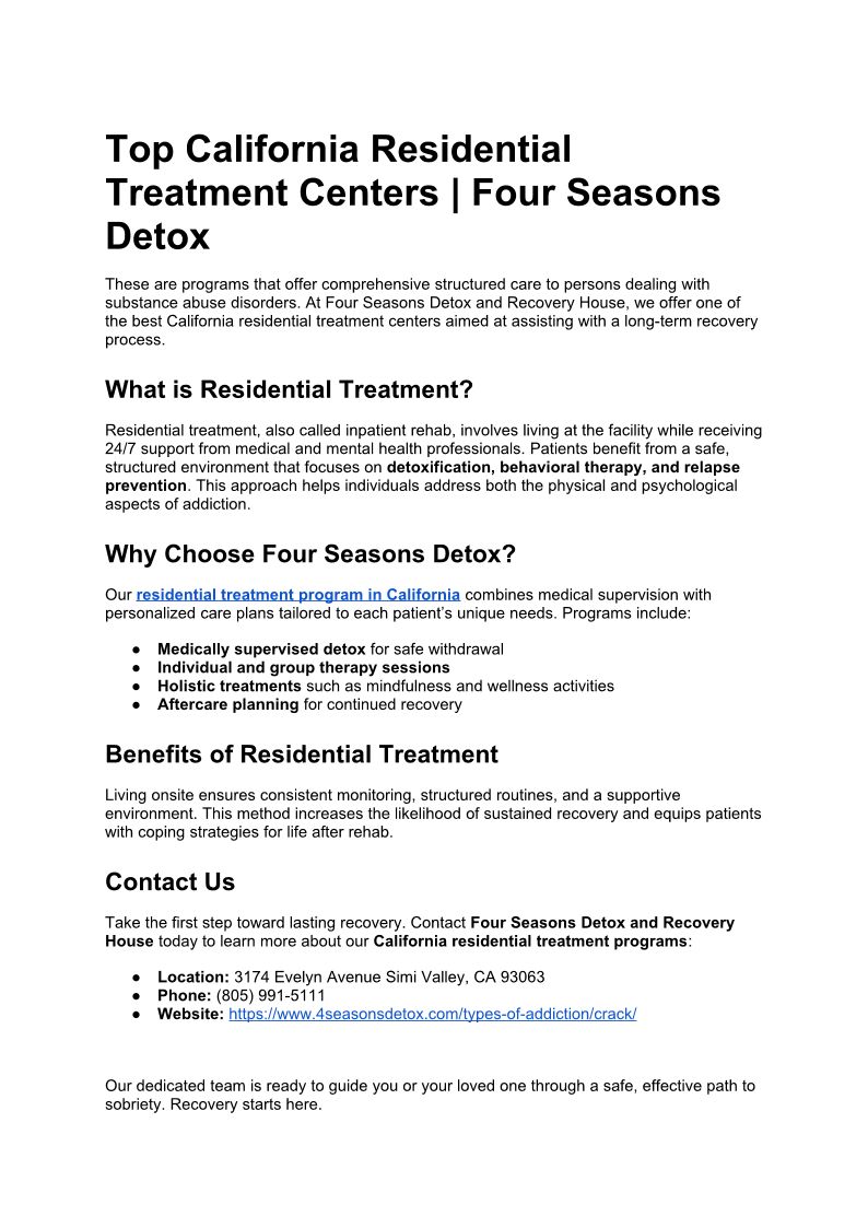 Four Seasons Detox and Recovery House is a rehab center in California specializing in drug and alcohol addiction treatment. Contact us now!