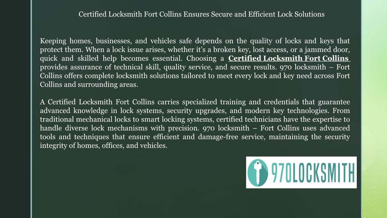 970 Locksmith is a trusted locksmith service in Fort Collins, Colorado. https://970locksmithservices.tech/