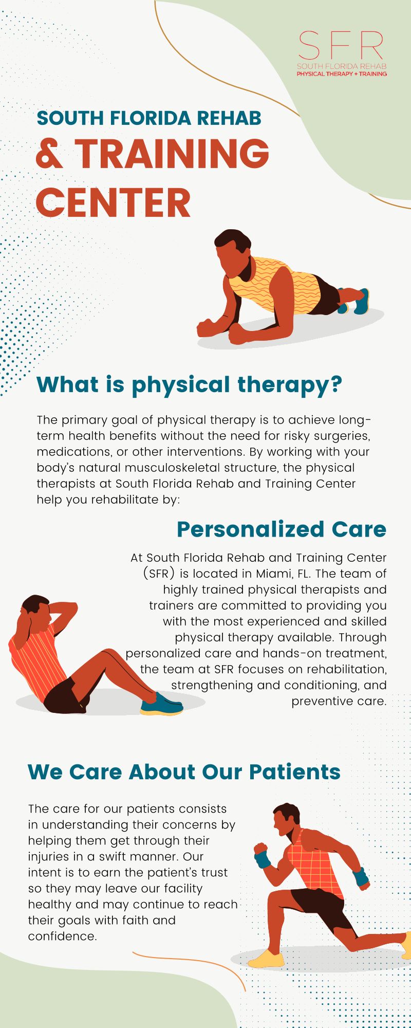 South Florida Rehab and Training Center (also known as SFR) is located in Miami, FL. The team of highly trained physical therapists and trainers is committed to