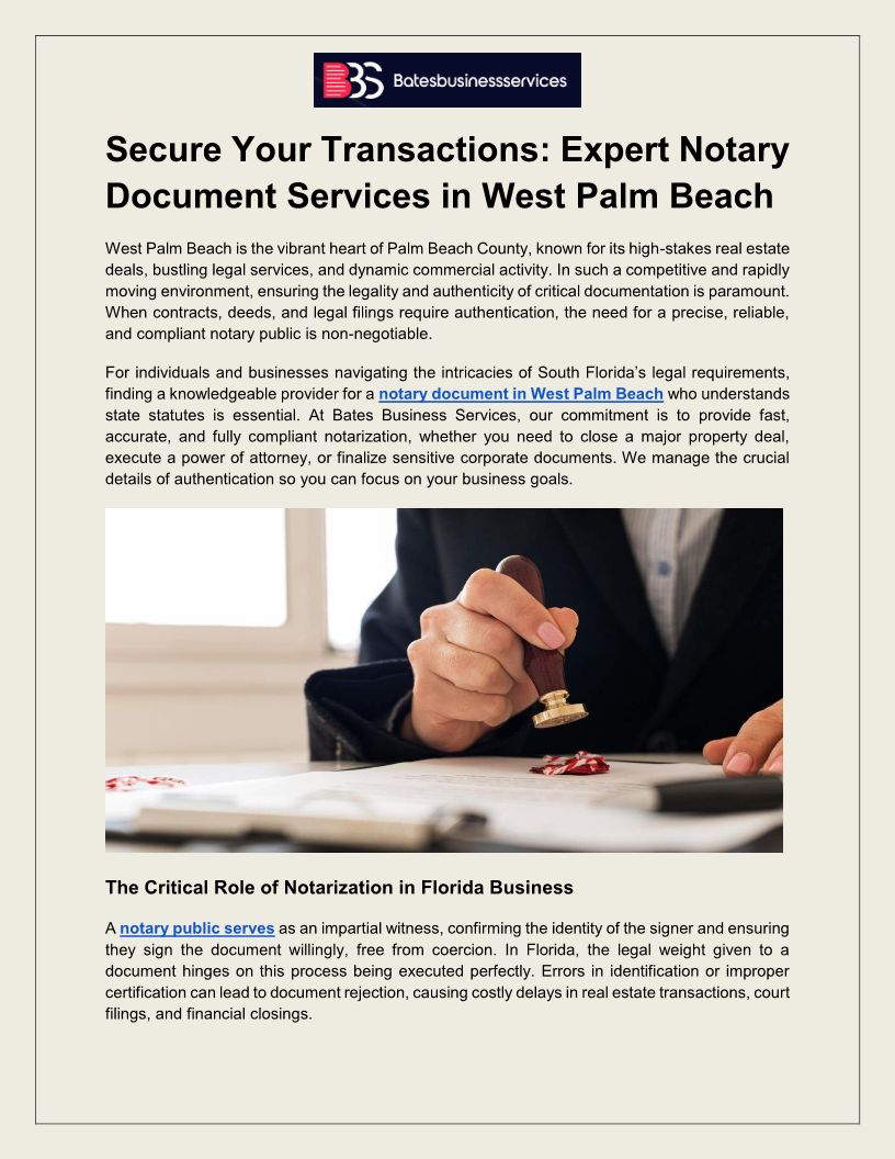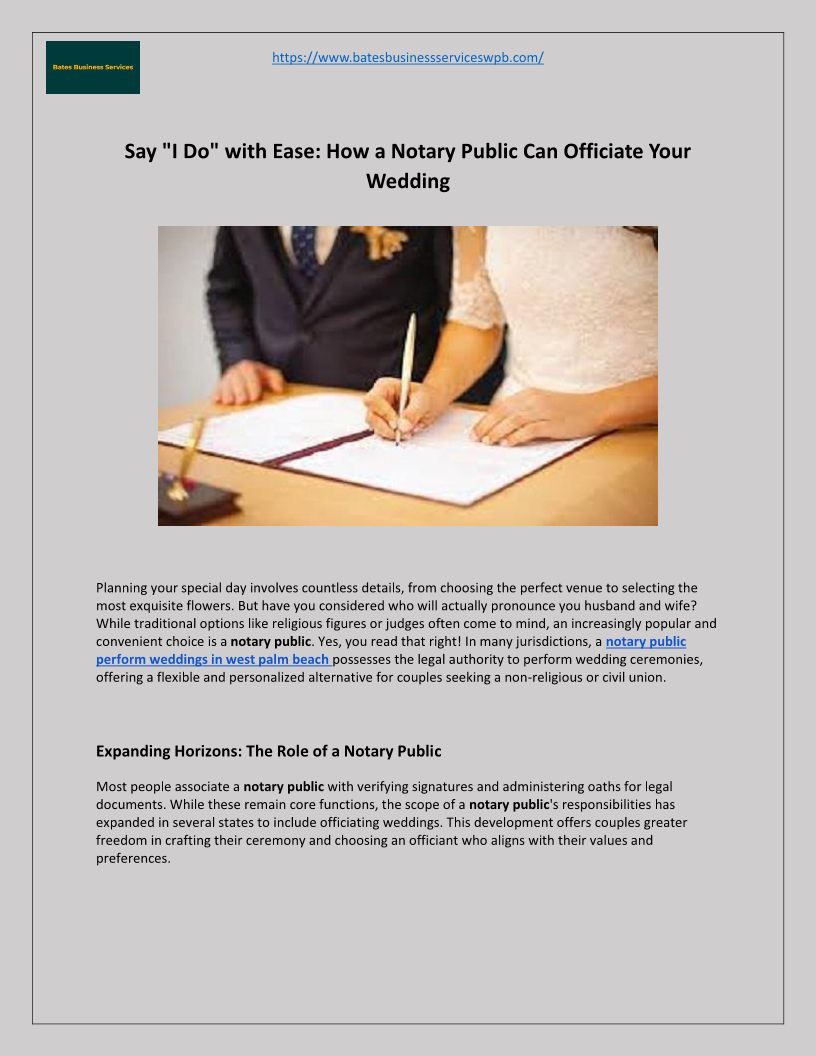Bates Business Services WPB offers reliable, professional document services and is a certified Notary Public for marriage ceremonies in West Palm Beach. We ensu