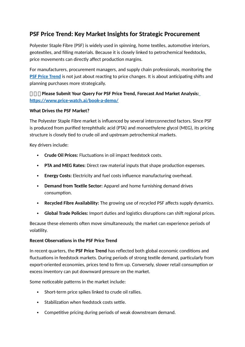 PSF Price Trend: Key Market ...