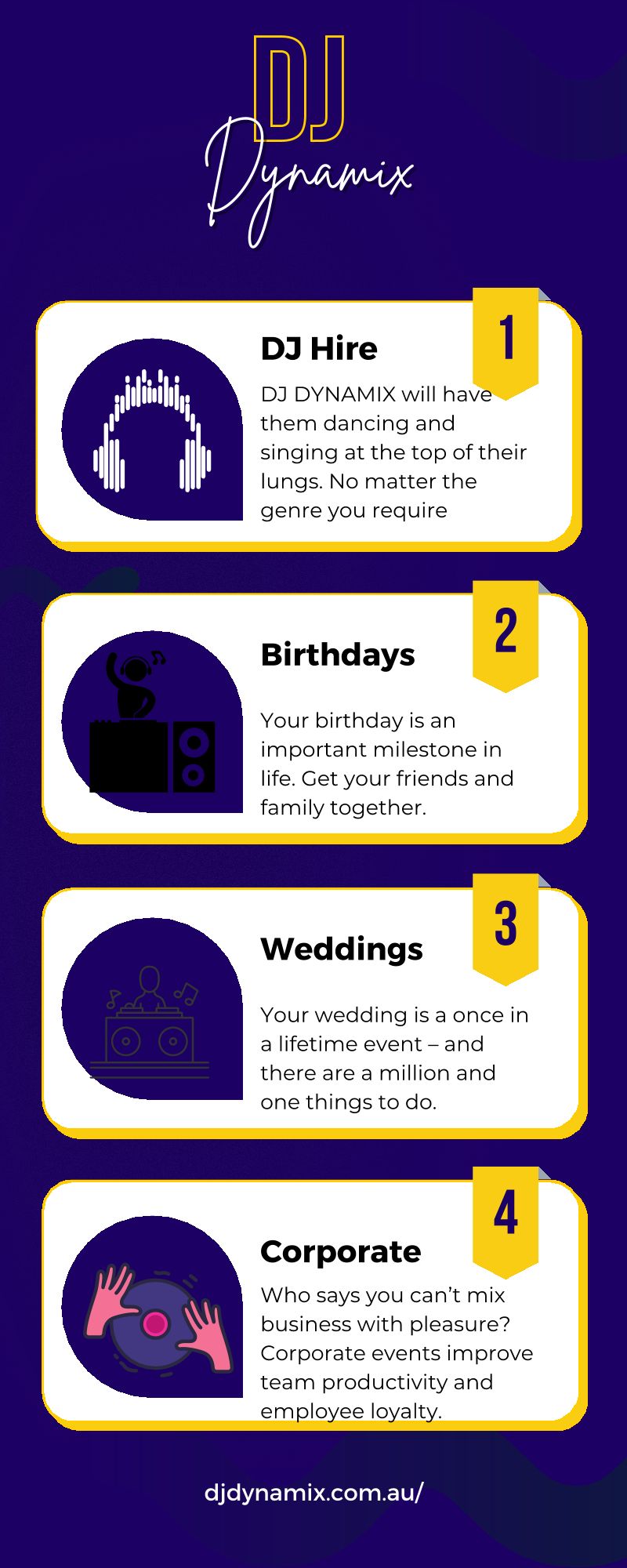 DJ Dynamix is a best rated DJ firm based in Sydney Australia. Hire our master DJ's for wedding, party and corporate events. https://www.djdynamix.com.au