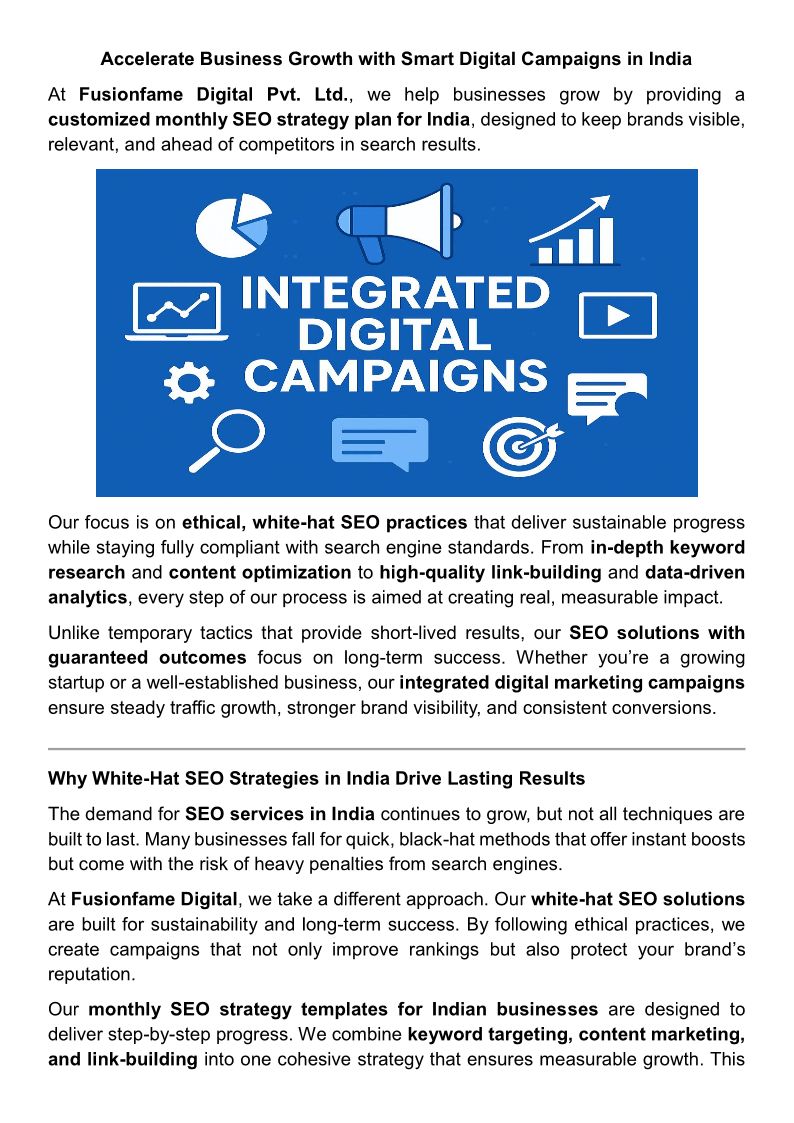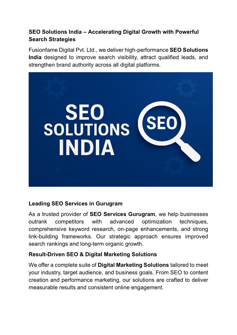 Fusionfame Digital Pvt. Ltd. is a top-tier digital marketing agency delivering complete solutions in SEO, online marketing, branding, Google Ads etc.