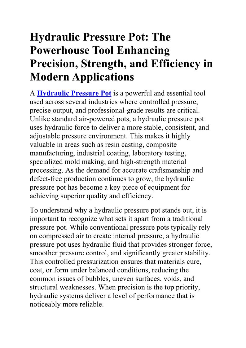 Hydraulic Pressure Pot