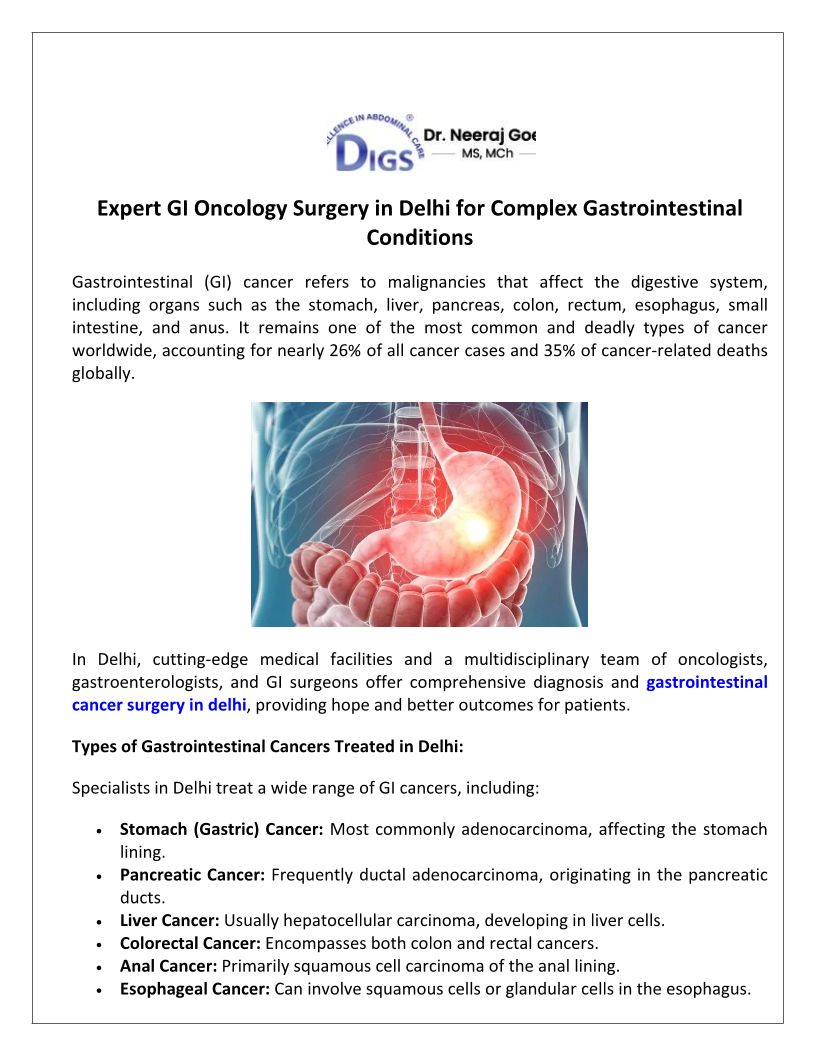 Dr Neeraj Goel, Cancer Surgeon and GI Surgeon In Delhi, India offer Laparoscopic Gastrointestinal Surgery, Stomach Cancer Treatment.