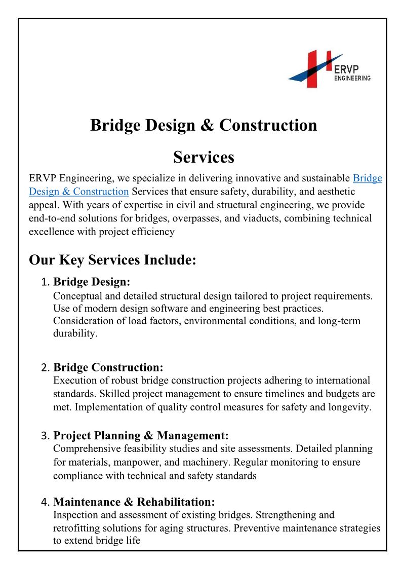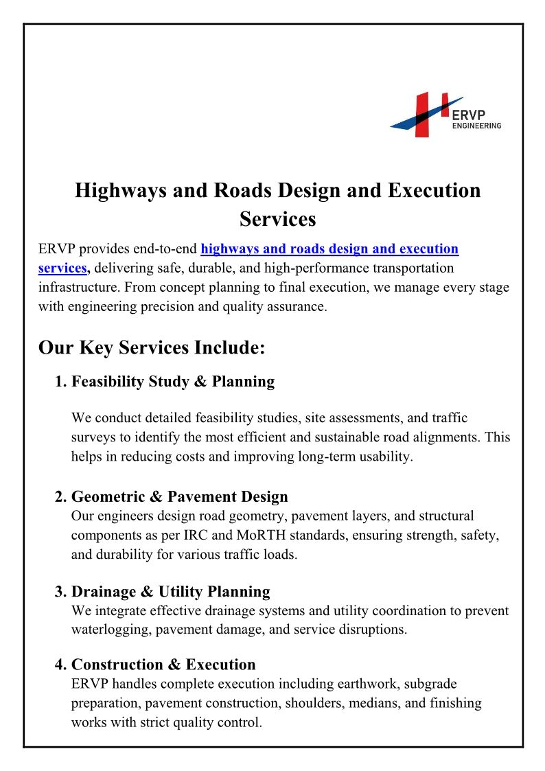 ERVP Engineering is an infrastructure engineering and consultancy firm in India specializing in highways and roads design and execution, bridge engineering.