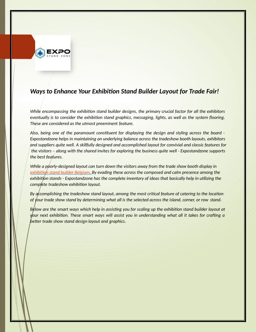 Expostandzone is one of the leading global online portals for the exhibitors, suppliers and organisers. With our stand builders, you can save up to 40% on your