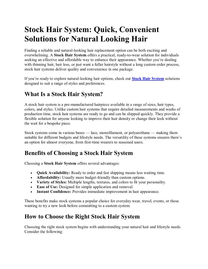 Stock Hair System, Quick, Co...