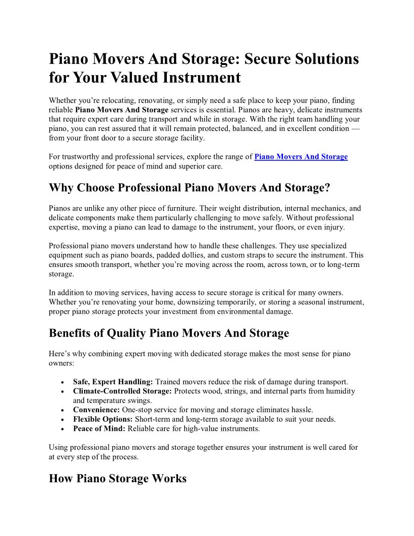 Piano Movers And Storage, Se...