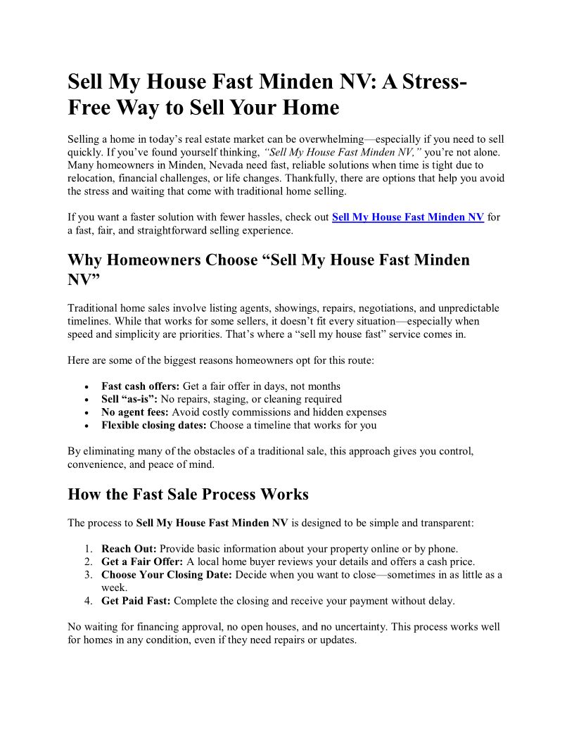 Sell My House Fast Minden NV...