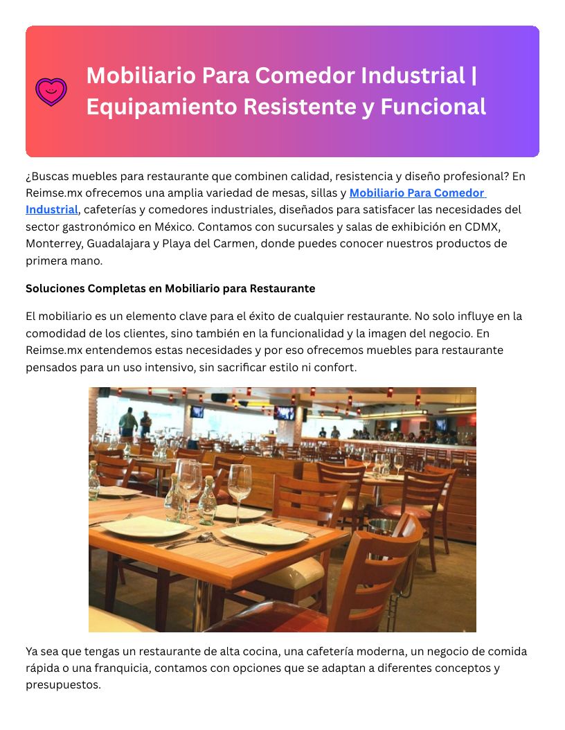 Mobiliario Para Comedor Indu...