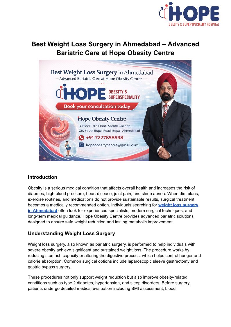 Best Bariatric Surgery in Ah...