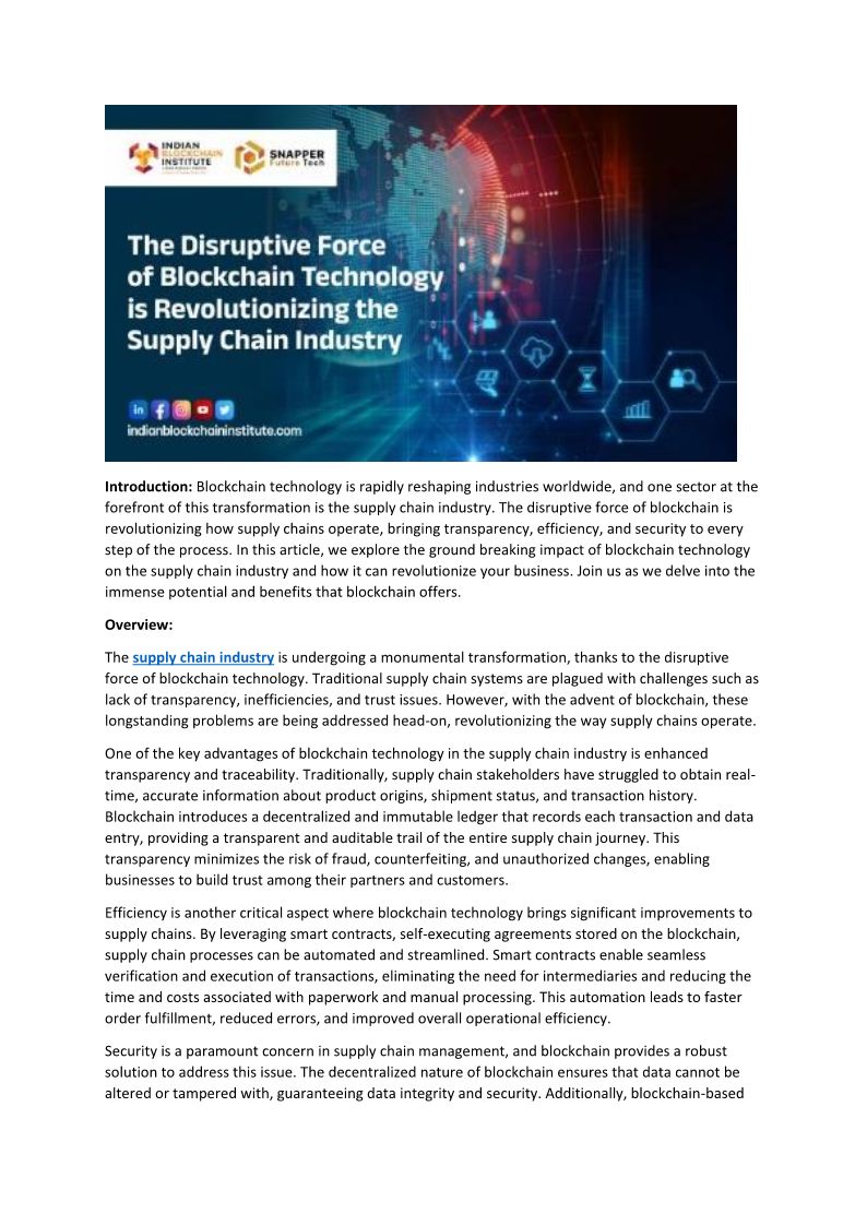 Blockchain in Supply chain T...