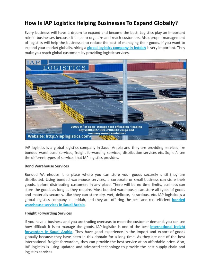 IAP Logistics – A Best Log...