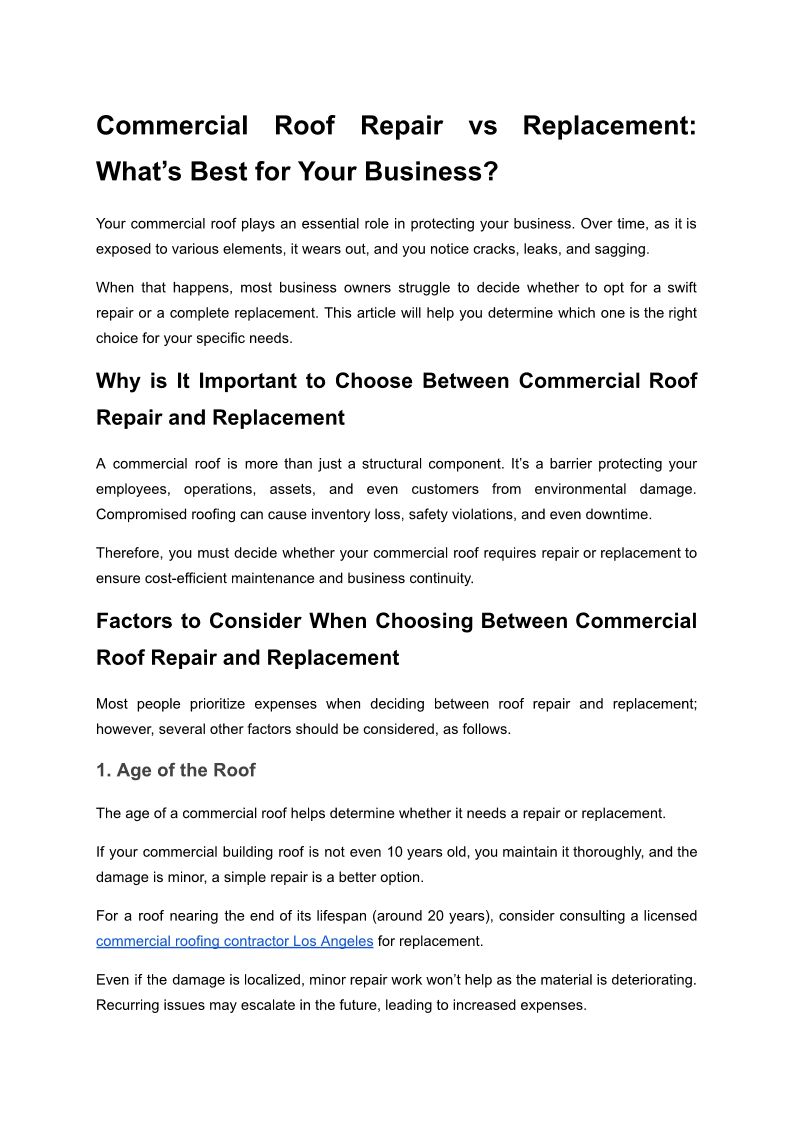 Commercial Roof Repair vs Re...