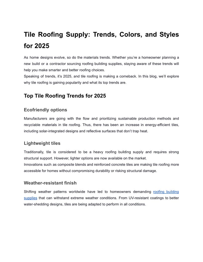 Tile Roofing Supply: Trends,...