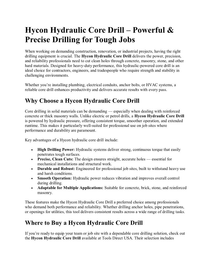 Hycon Hydraulic Core Drill �...