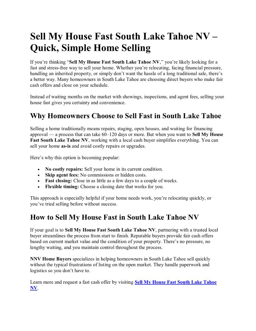 Sell My House Fast South Lak...