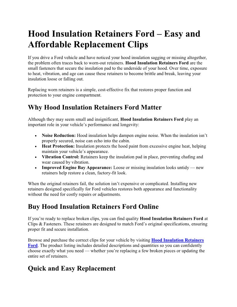 Hood Insulation Retainers Fo...