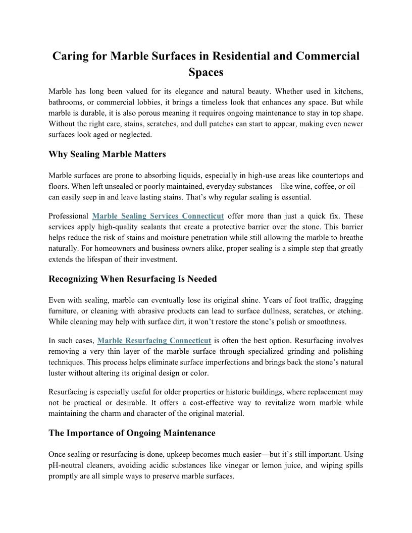 Caring for Marble Surfaces i...