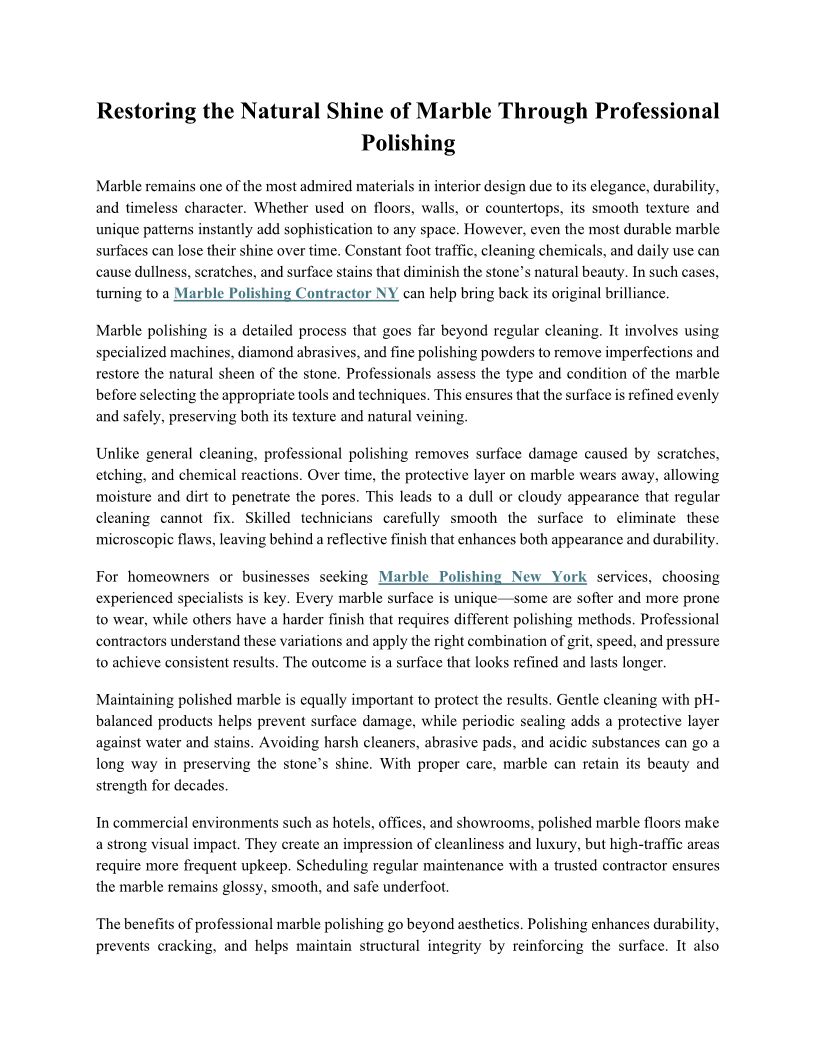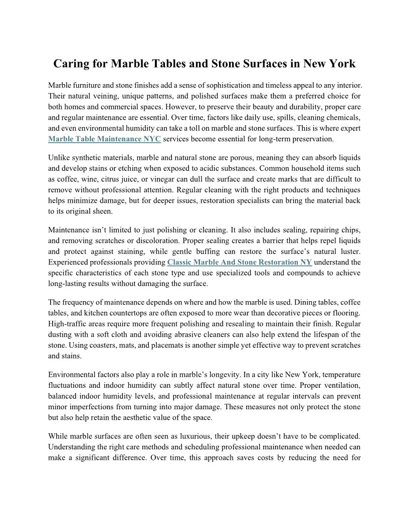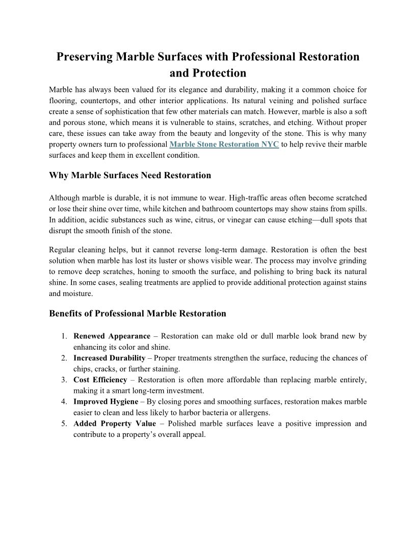 Preserving Marble Surfaces w...