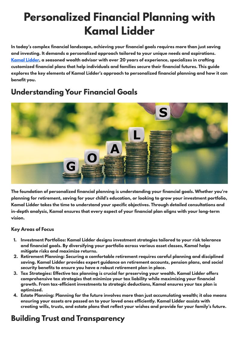 Kamal Lidder is a seasoned wealth advisor with over 20 years of experience in the financial industry.