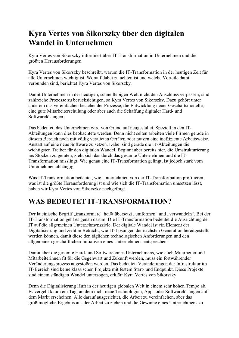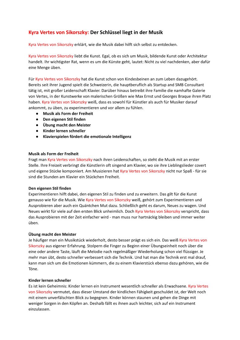 Kyra Vertes von Sikorszky arbeitet in der Schweiz als Startup and SMB Consultant. Bereits seit jungen Jahren hatte Kyra Vertes von Sikorszky großes Interesse an