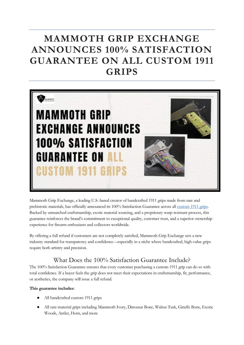 Mammoth Grip Exchange handcrafts premium 1911 gun grip from rare natural materials like woolly mammoth, dinosaur bone, and exotic woods.