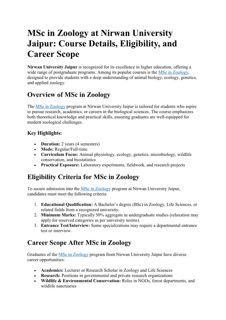 MSc in Zoology at Nirwan Uni...