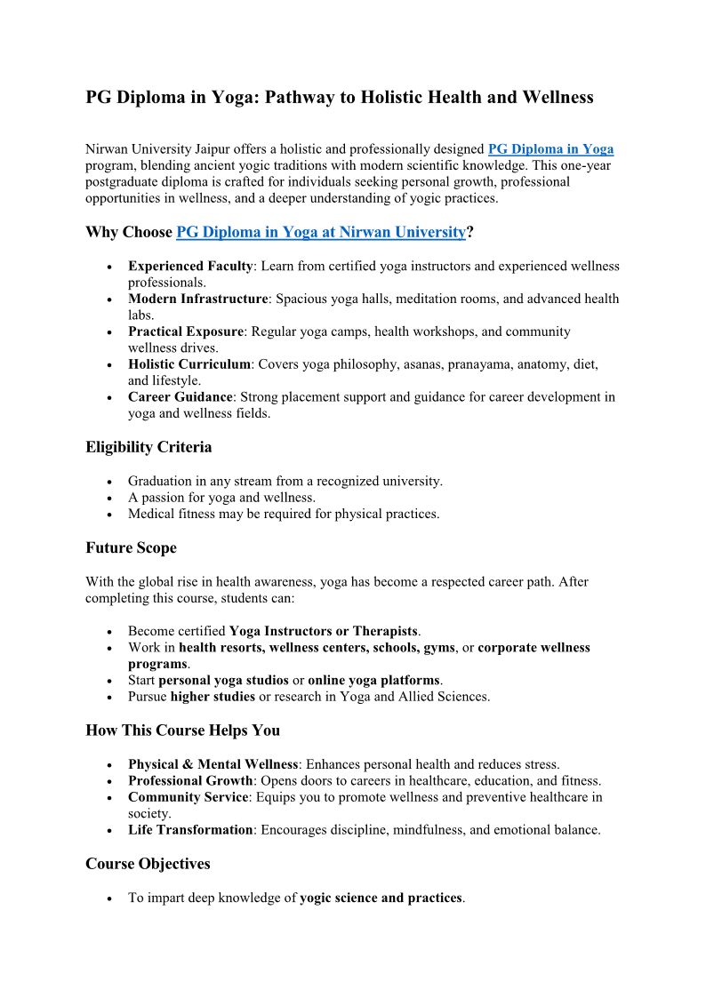 PG Diploma in Yoga