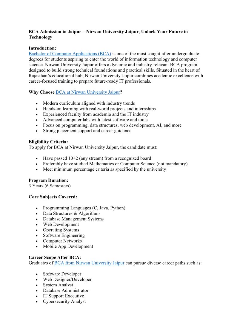 BCA Admission Open at Nirwan...