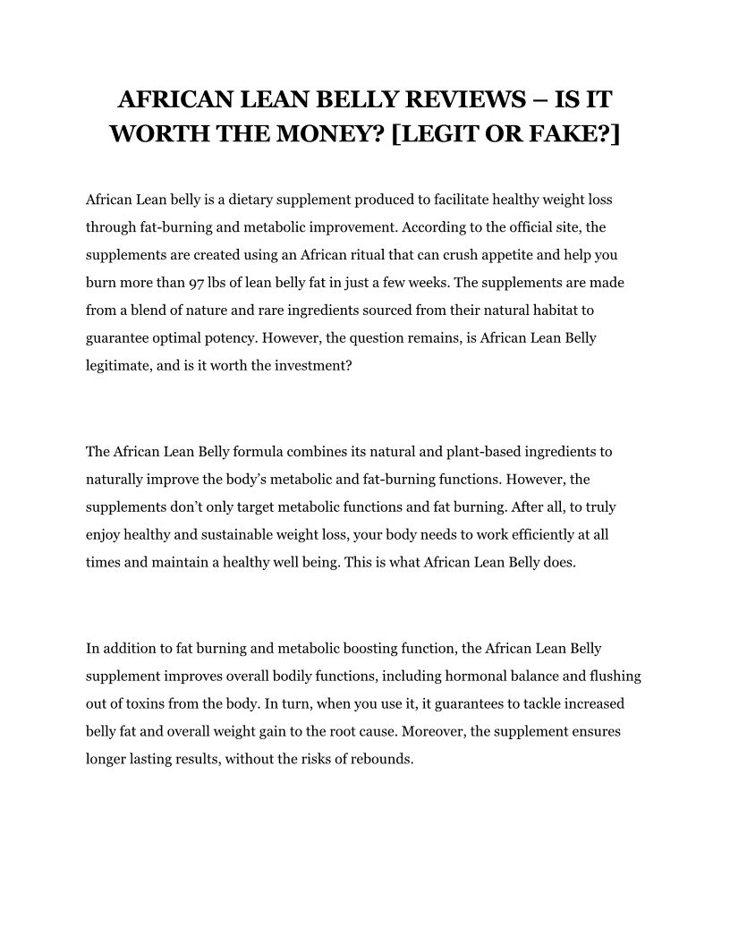 AFRICAN LEAN BELLY REVIEWS �...