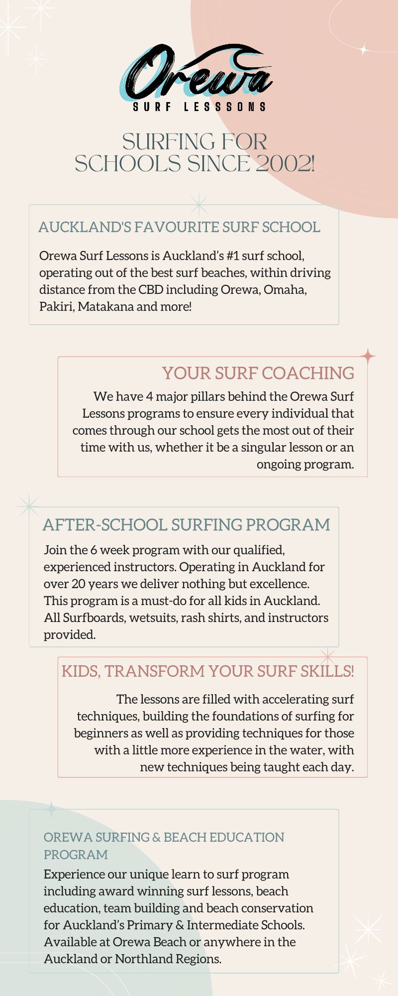 Orewa Surf Lessons provides the Auckland Region with high-quality surf lessons for all ages and abilities.
