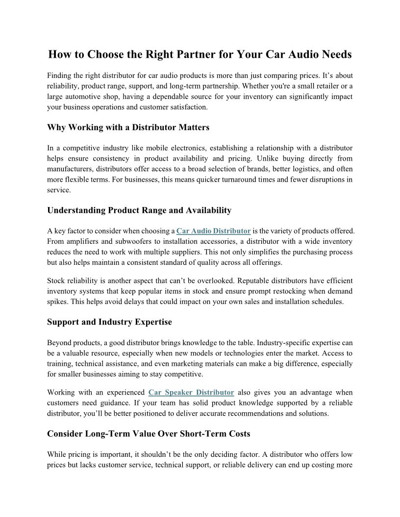 How Wholesale Audio and Car ...