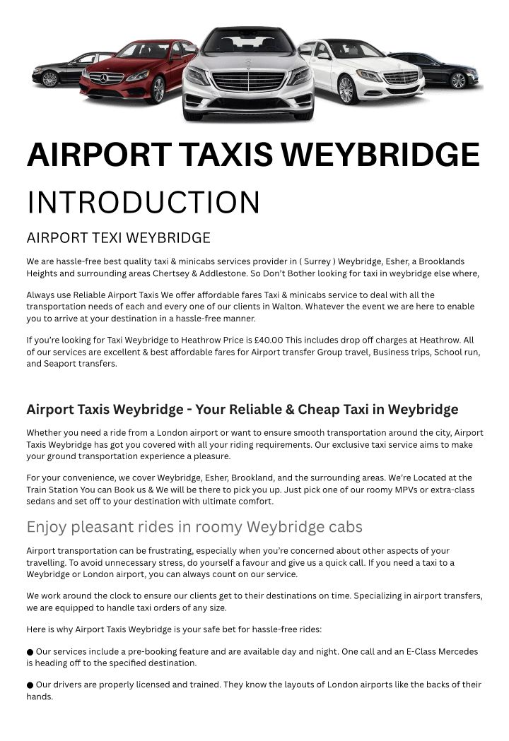 We are hassle-free best quality taxi & minicabs services provider in ( Surrey ) Weybridge, Esher, a Brooklands Heights and surrounding areas Chertsey & Addlest