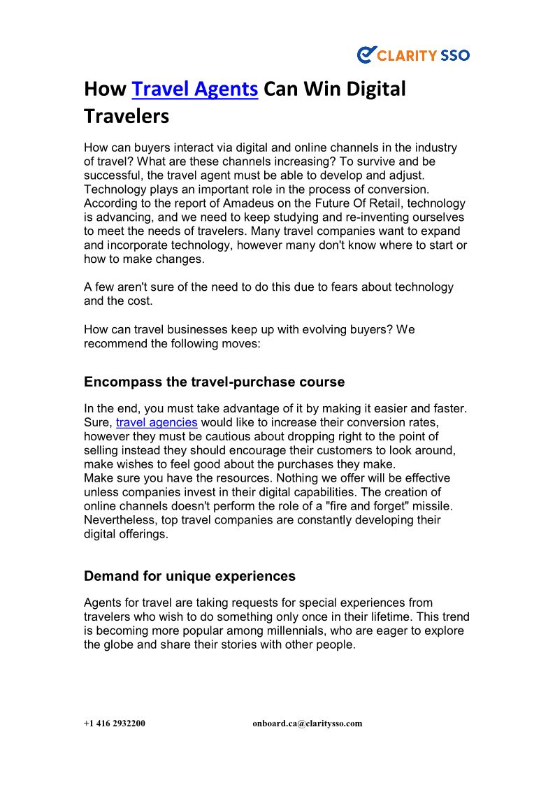 ClaritySSO is the only network working towards the transformation of distribution and acquisition of the travel content globally.