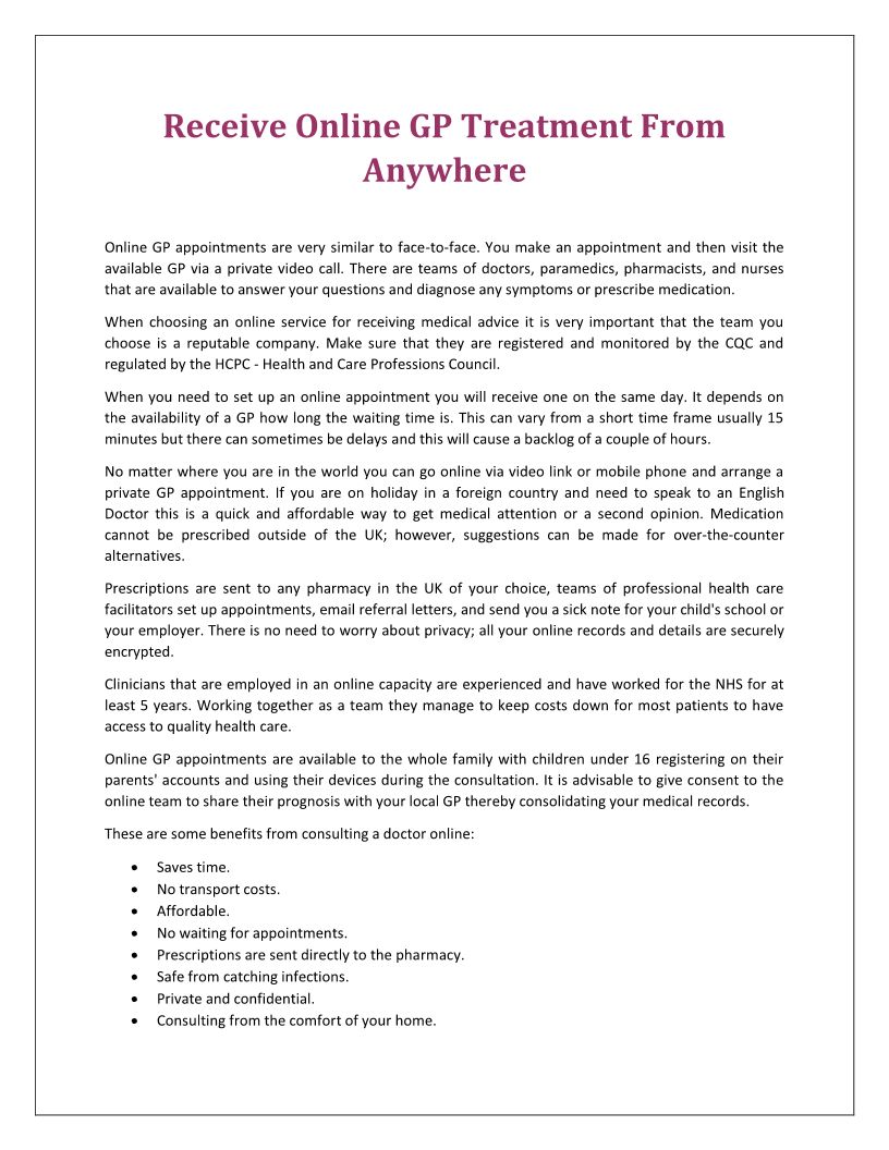 Receive Online GP Treatment ...