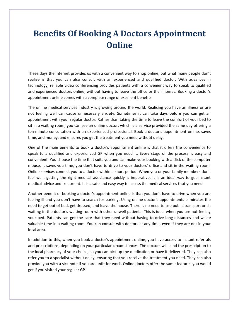 Benefits Of Booking A Doctor...