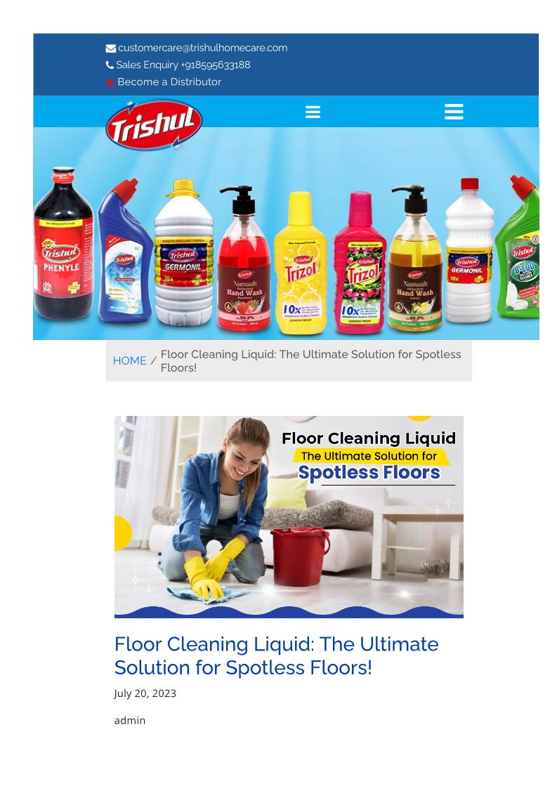 Trishul Home Care offers premium household hygiene products all throughout India. Our floor cleaners, disinfectants,Naphthalene and other home hygiene products.