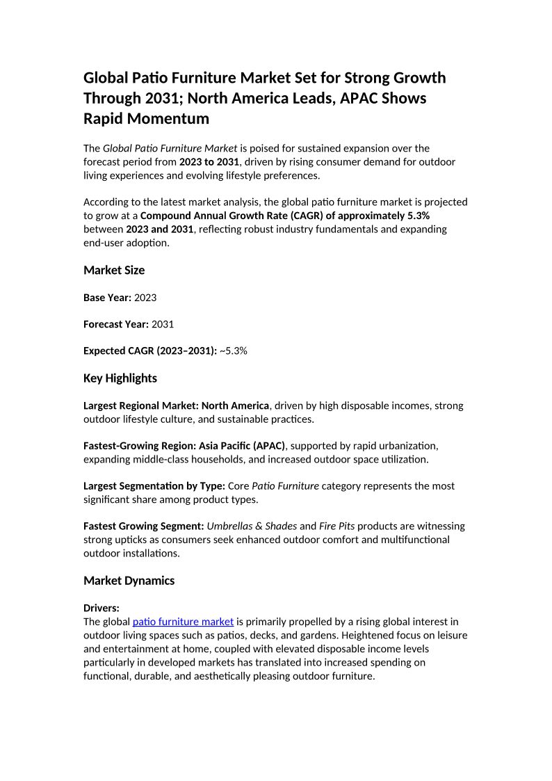 Patio Furniture Market