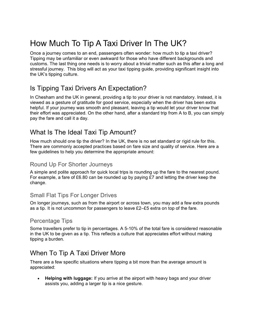 How Much To Tip A Taxi Drive...