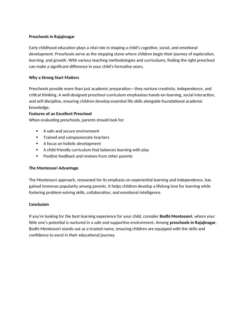 Preschools in Rajajinagar