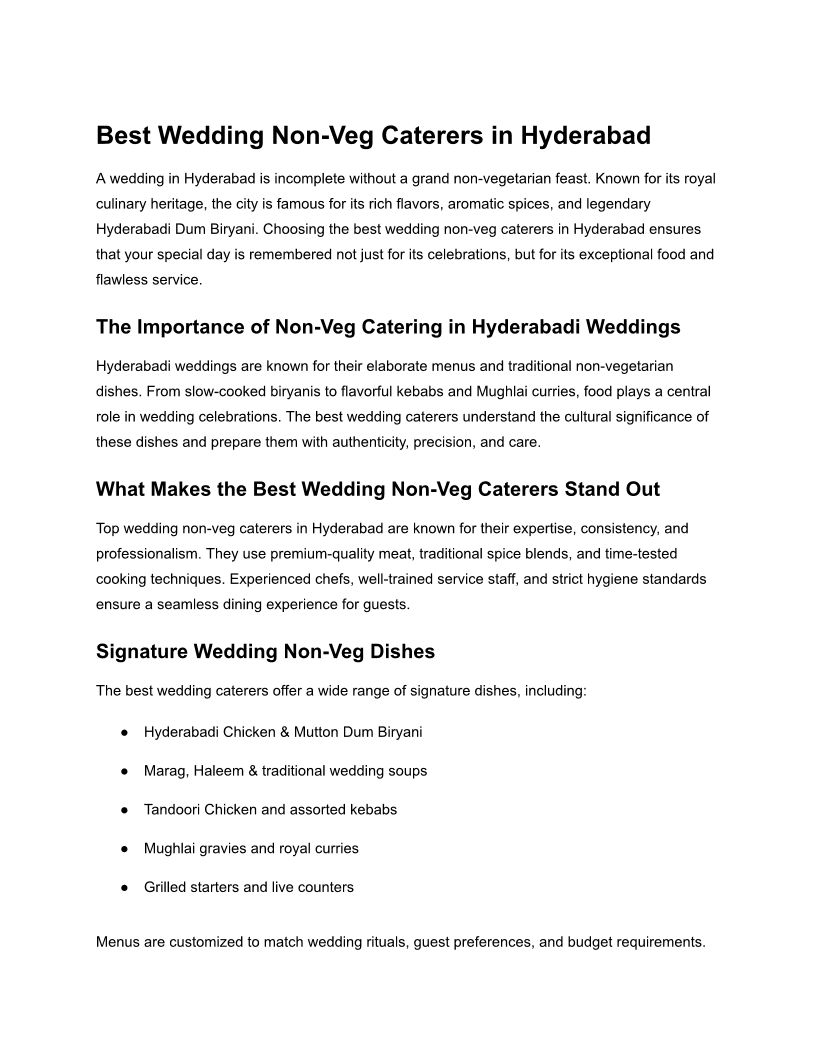 Best Non Veg Caterers in Hyd...