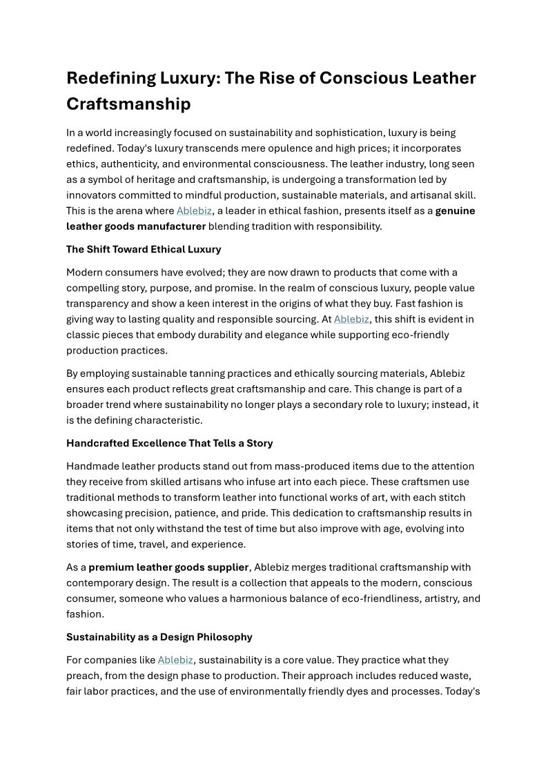 AbleBiz is a premium leather brand crafting timeless, high-quality products that blend traditional craftsmanship with modern design and lasting durability.
