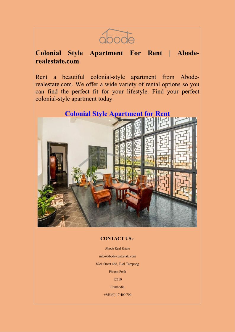 Colonial Style Apartment For...