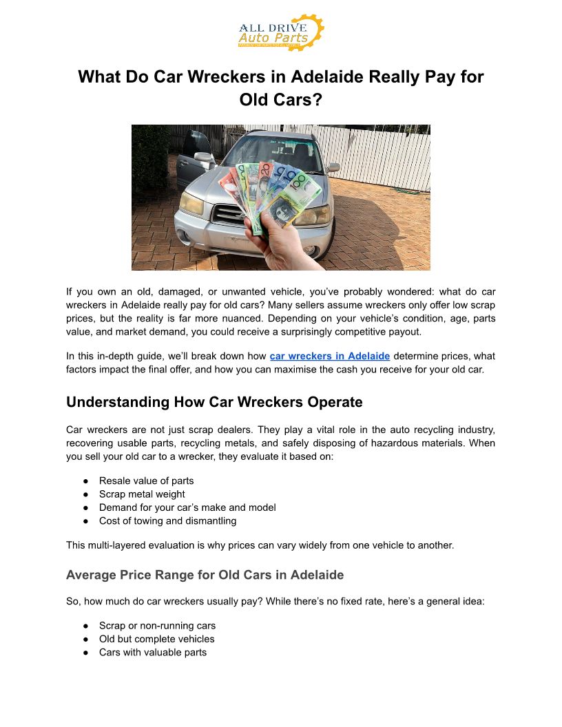 All Drive Auto Parts Adelaide is a wrecking service that deals with all types of car repairs. Get More Info - https://www.alldriveautoparts.com.au/