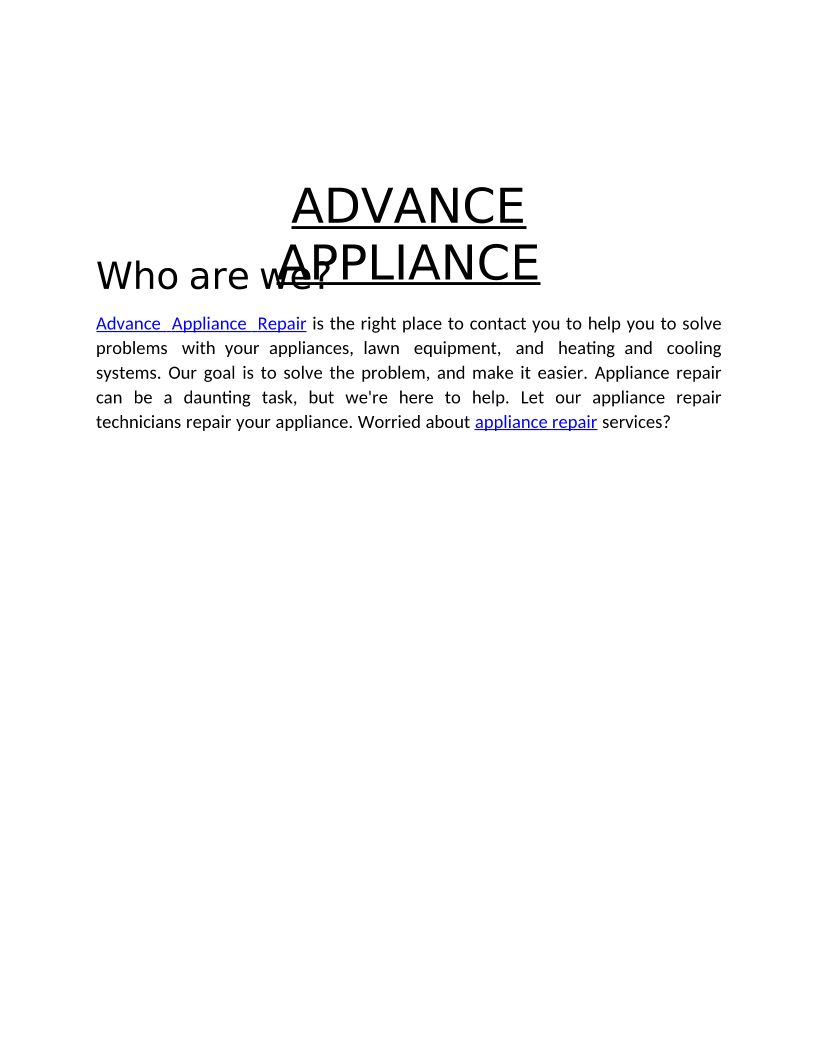 Advance Appliance Repair .