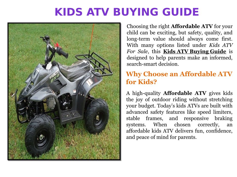 Affordableatv.com is a licensed ATV supplier that imports products directly from manufacturer to make sure that they can offer their customer the lowest price i