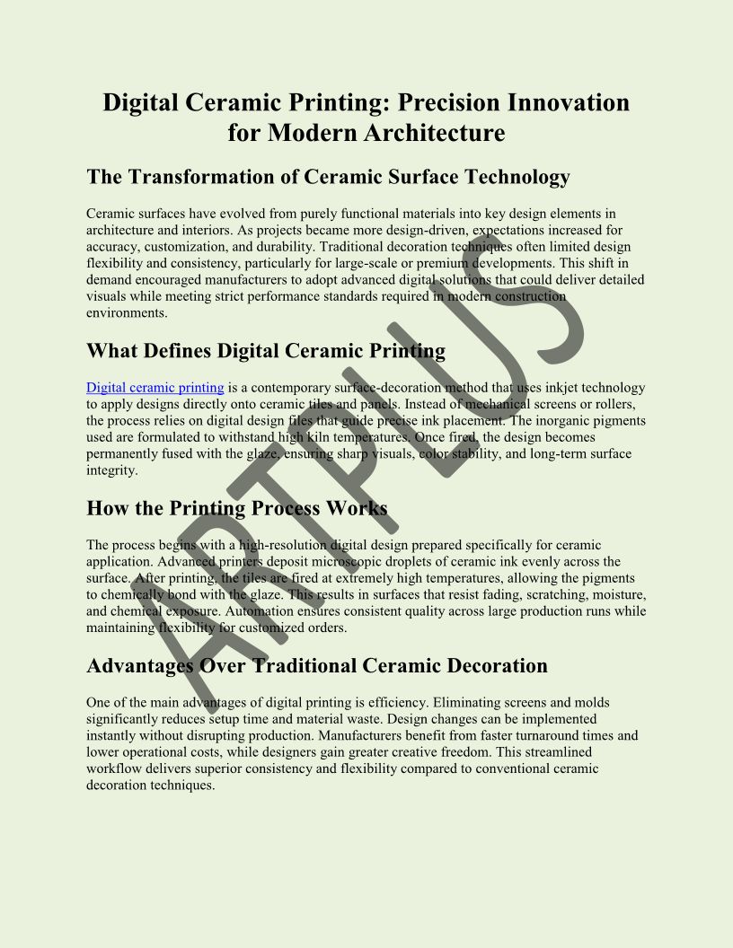 Digital Ceramic Printing Pre...